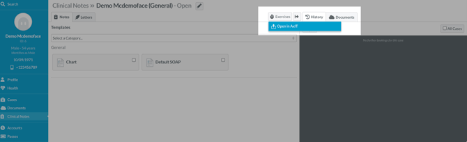In a Nookal clinical note, go to "Exercises" and click "Open In AxIT Connect"
