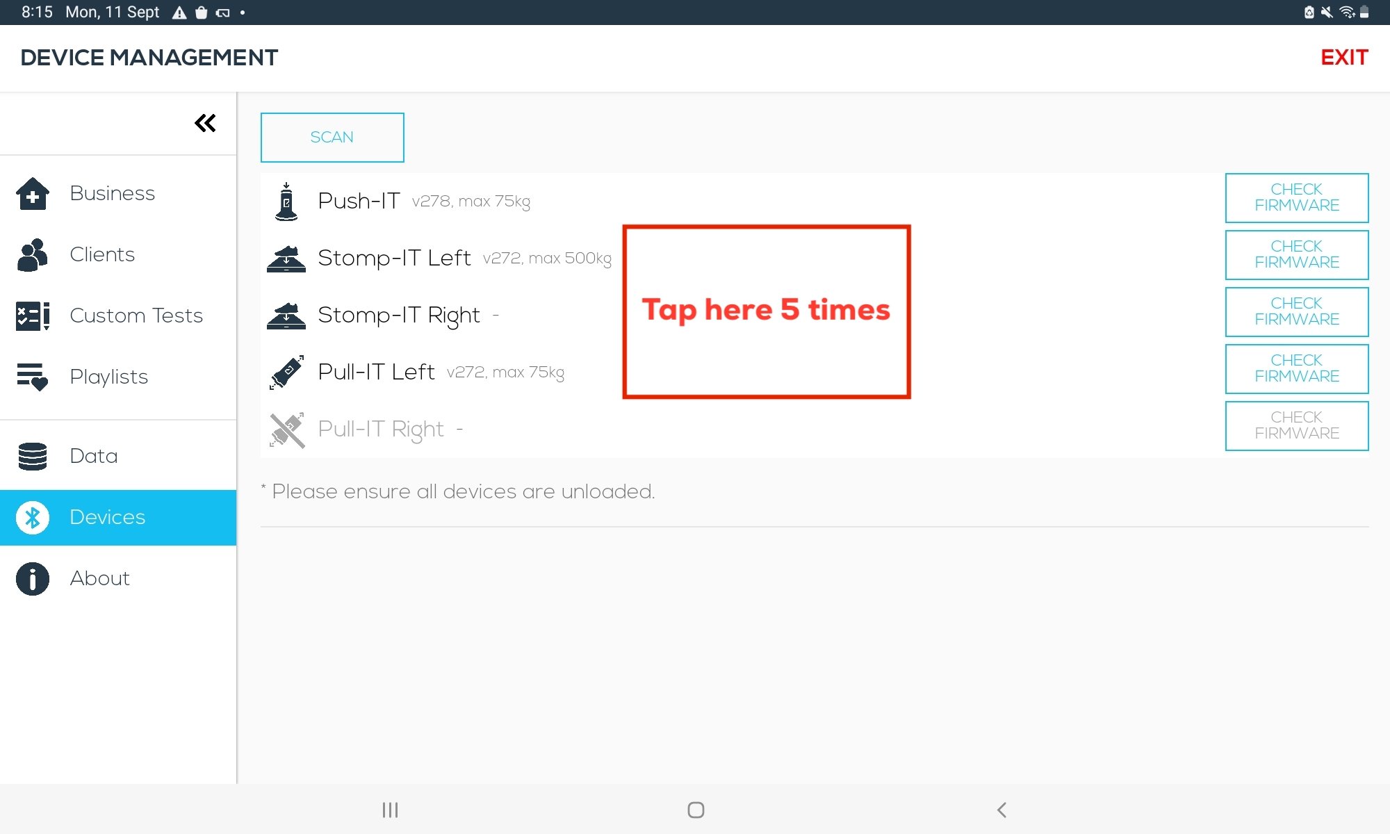 - Tap 5 times in the white space next to the device names to enter editing mode